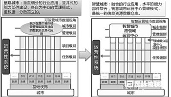 随着城市人口的聚集,产业的升级发展,人们对生活质量期望的提升,城市各行业领域都迫切地需求借助信息化手段提升社会管理效率和公共服务的能力。信息 城市阶段,城市各行业领域建立各自的信息化系统,各行业信息化系统彼此独立,信息资源没有进行有效的汇聚整合和共享。智慧城市阶段就是通过增加跨行业领域 的运营中心,汇集整个城市运营层面的数据,将原有的行业信息化延展为社会信息化,并将社会管理纳入统一系统,为分析各行业领域相关性,实现智慧决策创造了 条件。智慧城市相对信息城市来讲,加强了各行业系统及数据之间的相关性,通过关联关系挖掘新的价值,不再单纯追求因果关系的分析。